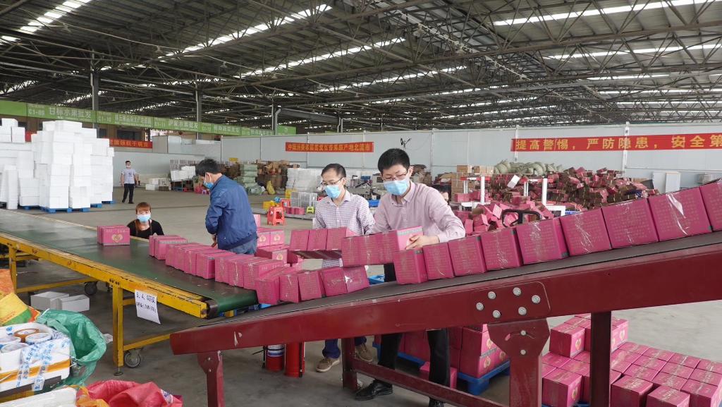 在杨兴武所在的公司,工人们正在打包百香果。受访者供图