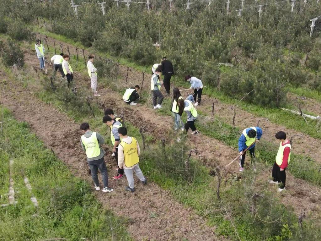 图为西安交通工程学院学生在葡萄园中参与劳动实践。受访者供图