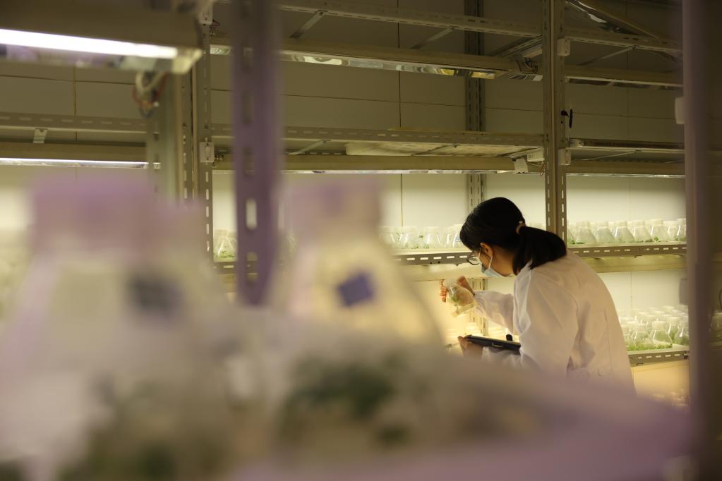 授粉结束,毛英转身又进入组培室,察看培养基里吐露嫩芽的丁香幼苗。毛英介绍,通过开展物候观察,择优选出生长健壮的母树,挑选健硕枝条和带芽幼嫩茎段,通过嫁接、扦插、组织培养等无性繁殖手段,保留优良的种质资源,“去年杂交授粉试验了10多个组合,只有4组结实,但为了培育新品种,合理利用丁香种植资源,必须坚持下去。”