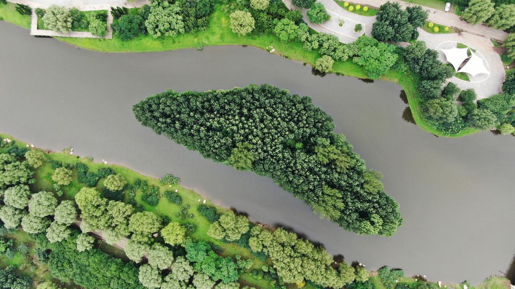 7月5日无人机拍摄的细河U谷公园。 新华社记者杨青摄