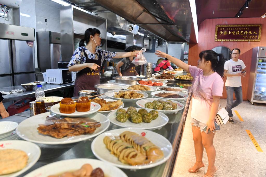 游客在三明市沙县区的一家小吃店内选购品种丰富的沙县小吃(2021年6月10日摄)。新华社记者林善传摄
