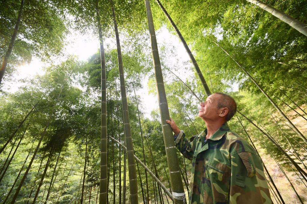 福建三明永安市洪田镇湍石村村民在查看毛竹长势(2020年11月26日摄)。新华社记者姜克红摄
