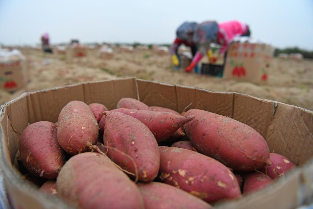 汕尾碣石镇滴水村,刚收获的甘薯装满纸箱等待运输。新华社记者梁旭摄