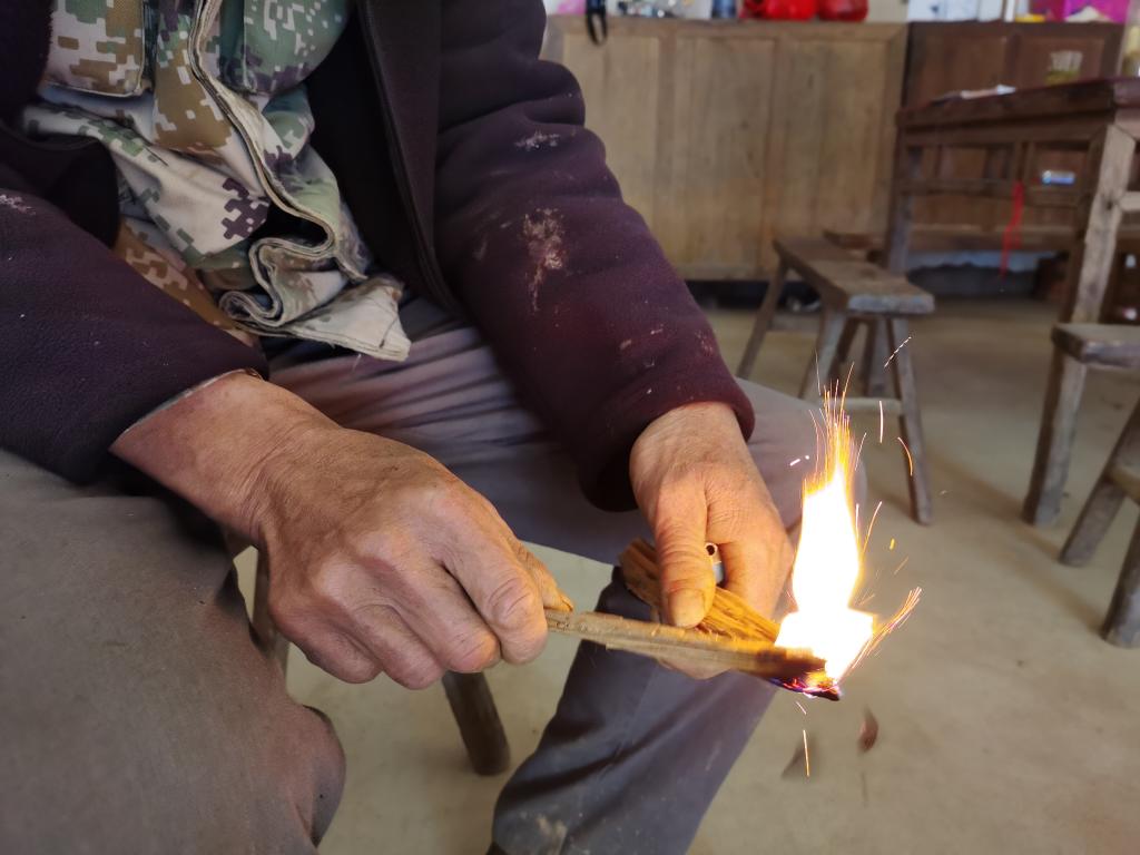 燃烧的“松光亮”。 (新华社记者 陈尚营 摄)