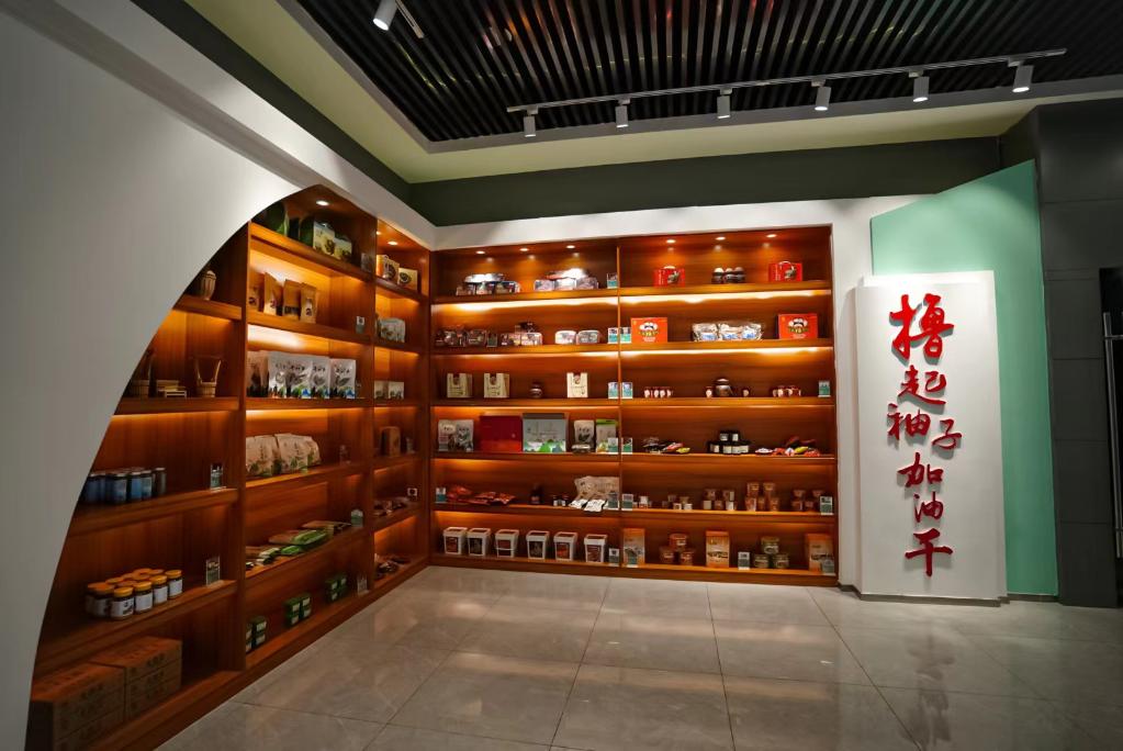 隘口乡村扶贫产业园内展示的特色农产品。新华社记者朱高祥摄