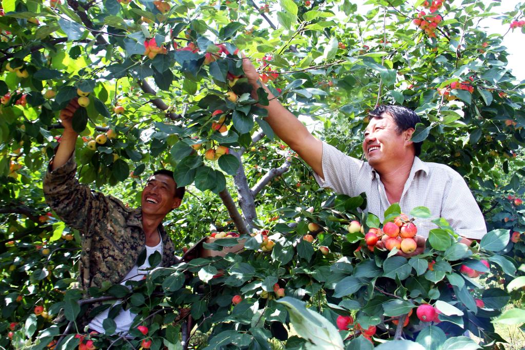 这是2021年秋季果农的摘果场景。(新华社发)霍志民摄