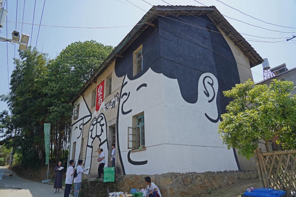 数年前,20多位艺术家的到来,让原本乏人问津的百人小村,变成“没有屋顶的美术馆”:簸箕上墙成为艺术品,猪圈变身村庄展览馆。通过对乡土文化就地改装,让艺术品散落乡村茶园间、旧屋里和田野上。