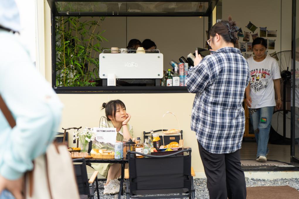 5月7日,顾客在安徽省潜山市南北咖啡馆拍照。新华社记者 赵金正 摄