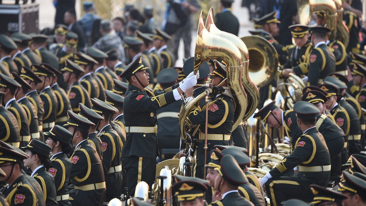 10月1日上午,庆祝中华人民共和国成立70周年大会将在北京天安门广场隆重举行。 这是解放军联合军乐团为演奏做准备。 新华社记者 姜克红 摄