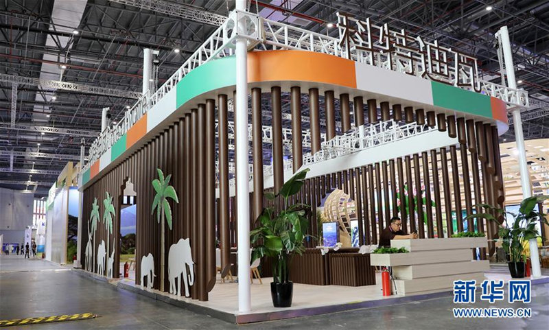 这是11月2日拍摄的第二届中国国际进口博览会国家展展区内的科特迪瓦馆。 当日,第二届中国国际进口博览会国家展展馆搭建工程基本完工,正在进行开幕前最后的展品布置工作。国家展展区内的展馆各具特色,静候进博嘉宾。