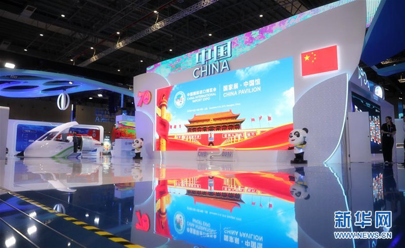 这是11月2日拍摄的第二届中国国际进口博览会国家展展区内的中国馆大屏幕。 当日,第二届中国国际进口博览会国家展展馆搭建工程基本完工,正在进行开幕前最后的展品布置工作。国家展展区内的展馆各具特色,静候进博嘉宾。