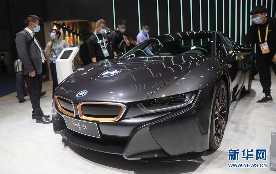 11月6日在进博会汽车展区拍摄的宝马新能源汽车。 在第三届中国国际进口博览会上,多个品牌展示的新能源汽车成为参观者关注的焦点。 新华社记者 丁汀 摄