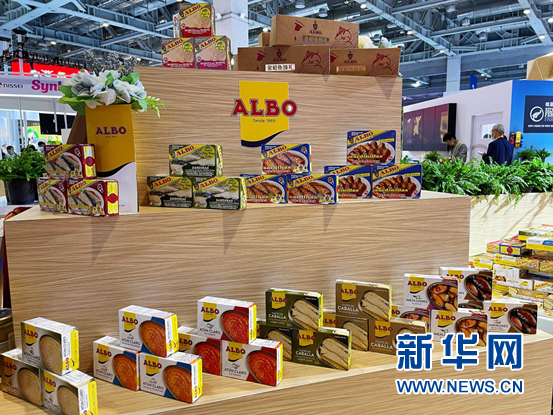 展台陈列着多种口味的罐头。 新华网 佘灵 摄