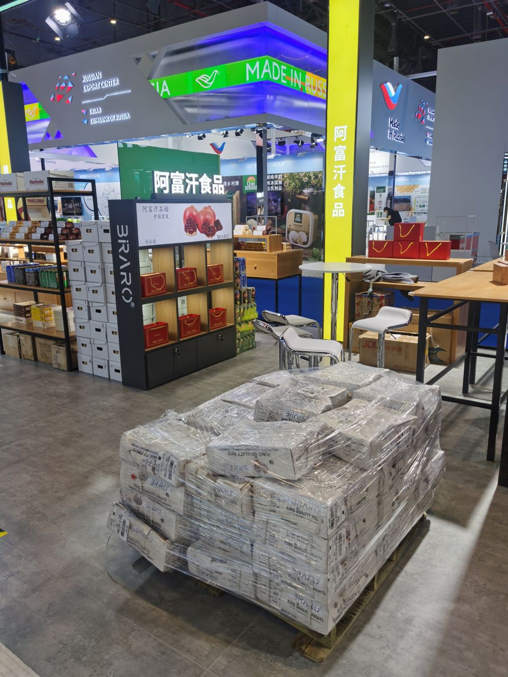 3日一早,阿富汗坎大哈石榴进入展馆,即将在食品展区内的绿地全球食品馆第一次与中国公众见面。(绿地集团供图)