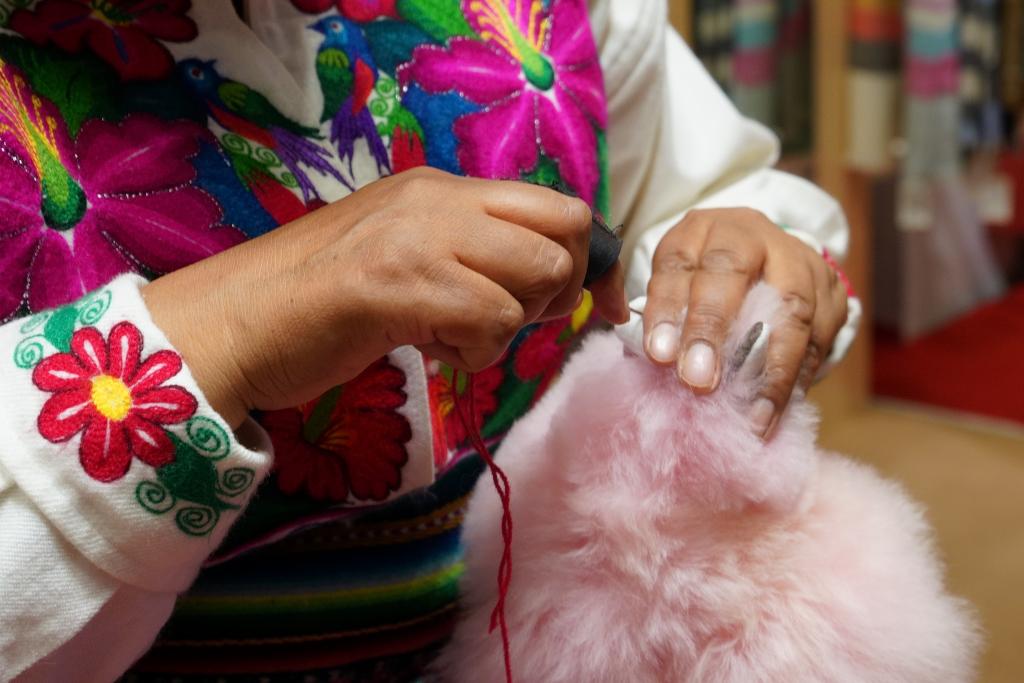制作羊驼毛皮制品是马马尼的家族传统。15岁时,马马尼到利马学习毛皮加工技艺,至今制作羊驼毛皮工艺品已经超过25年。