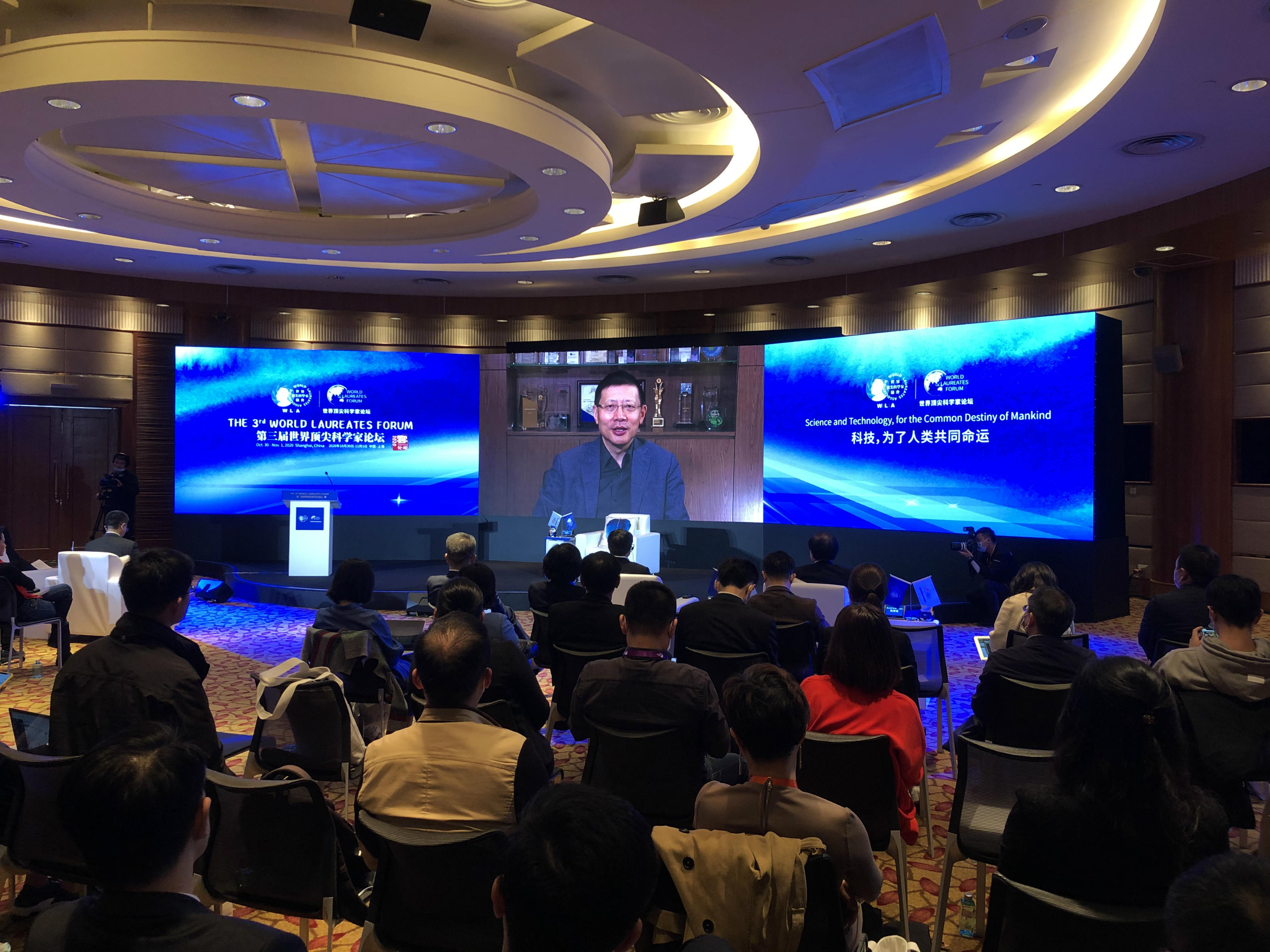 在“科学前沿与颠覆性技术”上,红杉资本全球执行合伙人沈南鹏做主旨演讲 本报记者 王辉、徐金忠摄