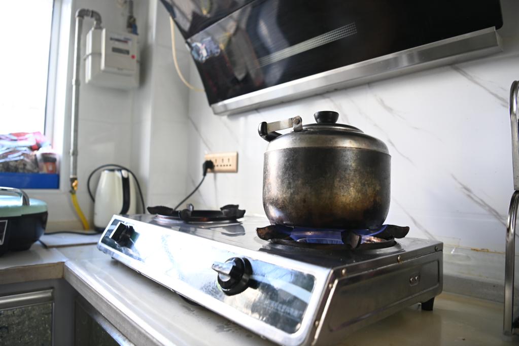 在武威市凉州区黄羊镇红太阳社区,居民们用沼气烧水做饭。(新华社记者 范培珅 摄)