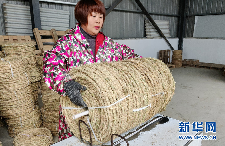 怀远县汇农草编专业合作社负责人唐建军介绍,白莲坡镇被称为“贡米之乡”,到处都是水稻秸秆,过去常常会通过焚烧的方式处理这些废弃秸秆,造成大气污染问题。秸秆经过加工后变成草绳,可广泛用于园林绿化苗木防寒保湿防虫、机器包装防碰撞、瓷器捆绑等。