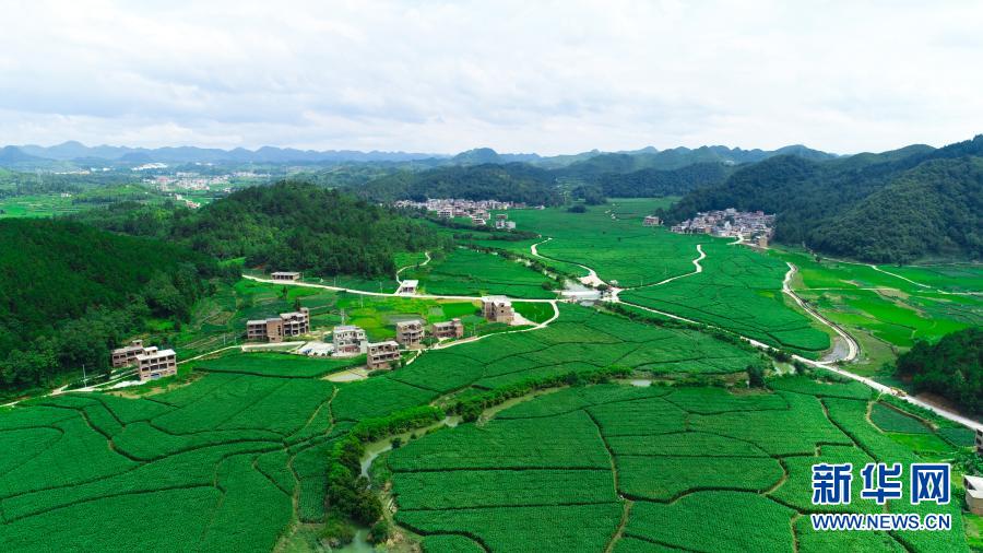 贵州省黔南布依族苗族自治州长顺县核子村,连片的茭白等待收获(7月6日摄)。新华社发(朱涛 摄)