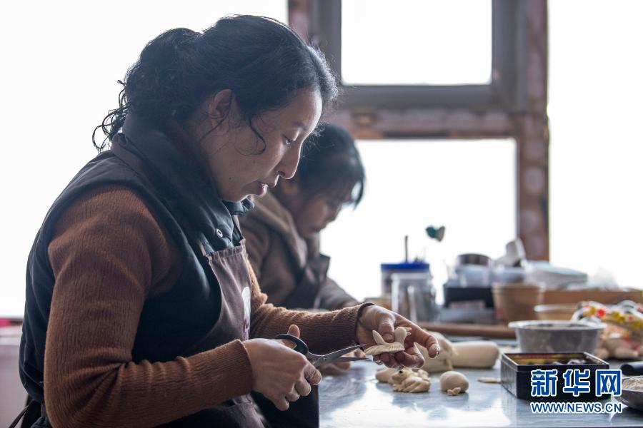 2020年12月31日,李三花在岚县普明镇普明村的家里蒸馒头。新华社记者 杨晨光 摄