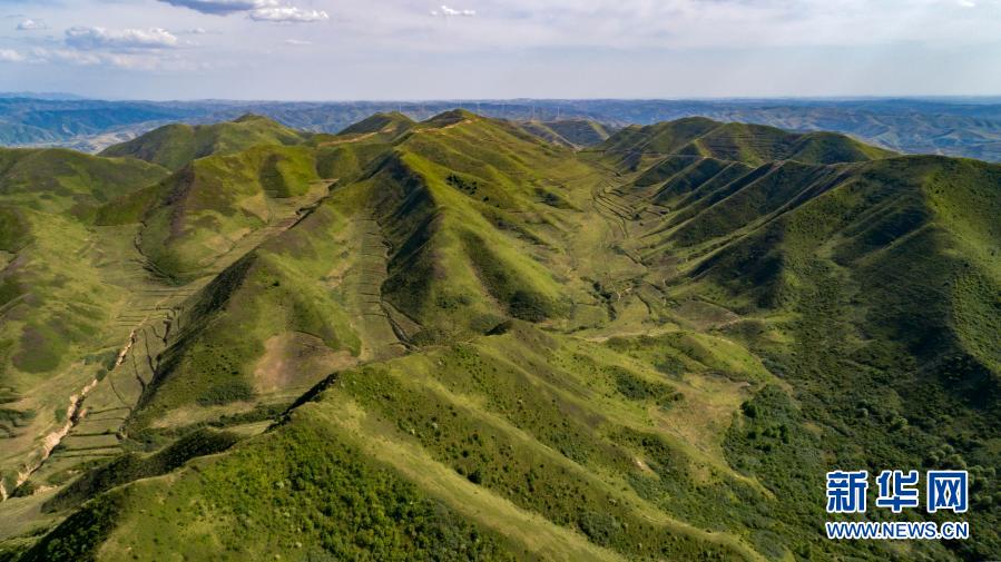 这是6月3日拍摄的被绿色覆盖的宁夏固原市原州区马东山林场(无人机照片)。新华社记者 王鹏 摄
