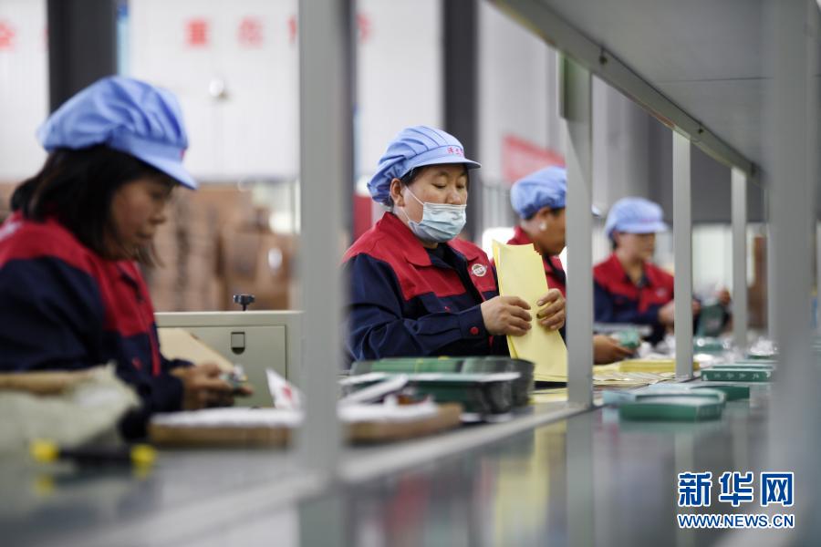 在位于宁夏西吉工业园区的宁夏泽艾堂生物科技有限公司,工人在包装艾草产品(9月17日摄)。新华社记者 王鹏 摄