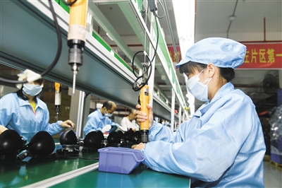 4月15日,中国—东盟自由贸易区凭祥物流园一家外贸企业的员工在生产出口海外的电子产品。 目前,广西凭祥市企业逐步实现复工复产,一些外贸企业克服疫情影响,全力完成外贸订单。 新华社记者 陆波岸 摄