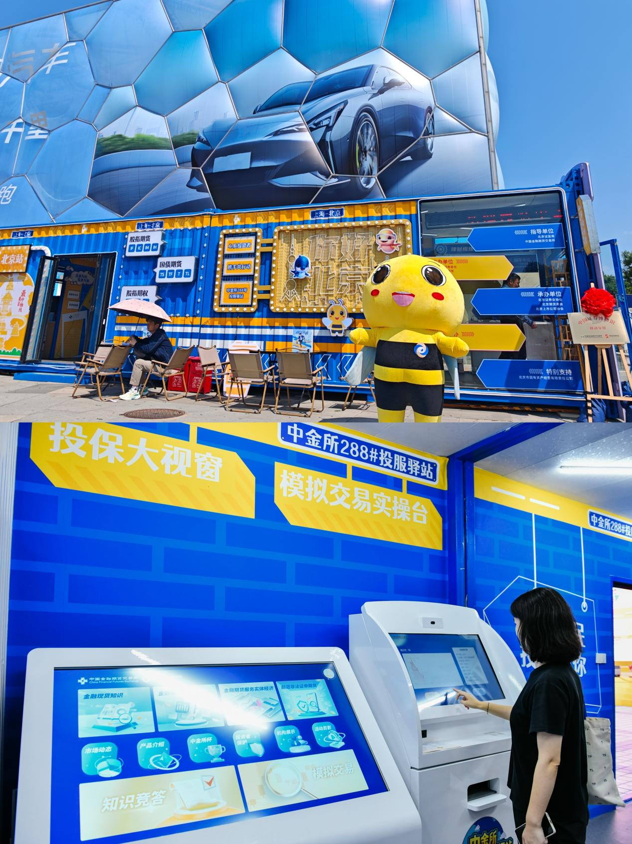 中金所负责组建的“中金所288号投服驿站”集装箱,以VR党建体验、模拟交易盲盒竞答及“金期咖啡”答题赠饮等内容,让金融衍生品知识更接地气。记者了解到,该集装箱结合声、光、电等手段,打造“吸睛”打卡区。箱体内设有“党建园地”“中金所介绍”“金融期货产品介绍”“互动专区”等模块,不仅陈列有金融知识书籍、画册、手册、折页等传统纸质宣传品,还嵌入电子终端,设置VR党建、模拟开户交易、盲盒竞答等体验项目,为游客打造一站式学习互动体验。此外,展区内设有投教品牌“金期咖啡”,大众通过扫码答题等形式即可获得咖啡饮品,更“接地气”地向投资者传递金融衍生品知识。